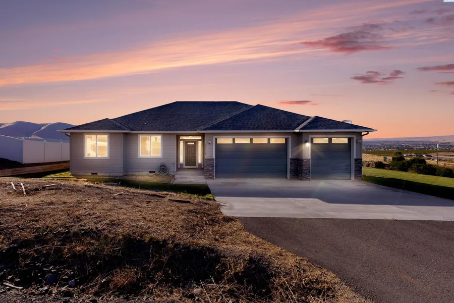 MLS# 288232 Enjoy comfortable living with beautiful views in this well-designed split bedroom home on a spacious .59-acre lot. The open great room features a cozy brick fireplace and durable laminate flooring, creating a welcoming space for everyday living. The kitchen offers granite counters, an island with bar seating, and plenty of cabinetry for storage. The primary suite provides a relaxing retreat with a large walk-in closet, double vanity, a soaking tub, and a separate tiled shower, tile flooring in the bathrooms, and a well-designed laundry room . The front yard is landscaped, while the expansive backyard is ready for your personal touches . The view and open space is one of the best features with a feeling of privacy yet close to services just off the hwy quickly into the tri cities , a spacious 3-car garage completes this move-in ready home with room to grow and enjoy the views.