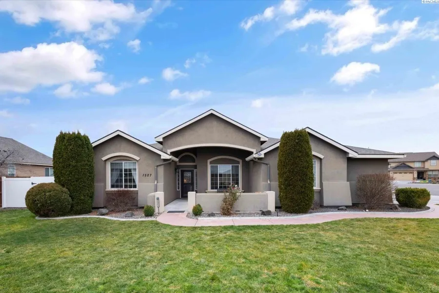 This 2,083 sq ft, 3 bed + Den + Pocket Office, 2 Bathroom West Richland home, a bright entry sets the tone, immediately offering a sense of openness and warmth as natural light from the large windows draw you in. Perfectly positioned on a corner lot within a cul-de-sac, in a highly sought out quiet West Richland neighborhood. Just off the entry, french doors lead you to a large flex space with a large window that offers endless possibilities—ideal for a private home office, formal dining room, or playroom. Continuing forward, the home opens seamlessly into an open floor plan, with living room, dining room and kitchen, making this home perfect for family time or large gatherings. New carpet in 2024, Large picture windows, tall ceilings, and gas fireplace fill the space with light and warmth. The kitchen is thoughtfully designed with stainless steel appliances, large breakfast bar island, ample counterspace and custom cabinet storage that gives you space for all of your kitchen gadgets. The hallway takes you to a large walk-in pantry and pocket office, giving you many options in this home to make it your own. Tucked privately away, the primary suite offers comfort and tranquility with an on-suite bathroom, including double vanity, soaking tub, walk-in shower with seated bench, toilet room and well-sized walk-in closet. Secondary bedrooms and bathroom are well-sized and thoughtfully placed in this split-bedroom floorplan. Everyday functionality shines with a laundry room conveniently located off the fully finished 3-car garage, with utilities and water softener. Outdoor living is an extension of the interior experience, with a covered courtyard at the front of the home, welcoming quiet mornings and a covered back patio offering the perfect space for evening relaxation or entertaining. In a desired West Richland location, close to shopping, schools, and a short commute to the Hanford area, this home has everything and more!