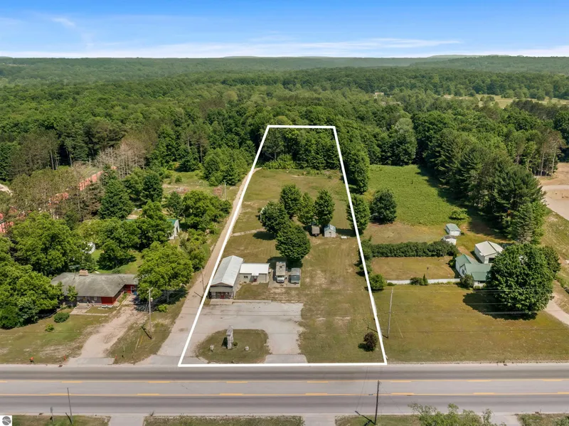 Prime 2 plus acres - Busy location near US31 & M115 intersection. Main building features sales offices in front and possible 1 bedroom apartment attached (apartment needs TLC). Pole Barn (24x26) and Storage Building (17 x 12). Zoned commercial but adaptable to many uses. Located near the new Crystal Shores Casino, the new Benzonia Township Offices and across from Timberline Campground. Growing area for business with many recreational opportunities. Near Lake Michigan beaches and marinas, Sleeping Bear Dunes, Betsie and Platte Rivers, Betsie Valley Trail, Crystal Mountain.