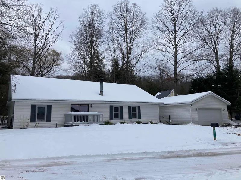 2,073 sq ft, 3 br 2ba ranch with 180' of private frontage on the Platte River. Perfect for a year-round home, up north getaway or as an investment property (short term rental allowed). 24' x 24' detached 2 car garage and 2 storage buildings. Well maintained, built in 1985 with recent remodeling and updates. Wood burning fireplace and gas stove. Heated ceramic tile floors in family room and guest bathroom, laminate floors throughout the rest....No carpet here! Master suite with a large walk in shower with 2 shower heads. Cathedral ceilings. Central AC. Huge deck for the lovely river views. All appliances stay including washer, dryer, mini-fridge and chest freezer. One of the best laundry/mudrooms you'll ever see. New septic/drain field installed in 2018. Fenced in yard ideal for dogs. Potential 4th bedroom is currently a dreamy office overlooking the river and in the past has been used as a hot tub room. Previous owner had the home set up as handicap accessible....all that is needed to be used so again is for a ramp to be re-added. An overall terrific value for a private waterfront home in Northern Michigan.
