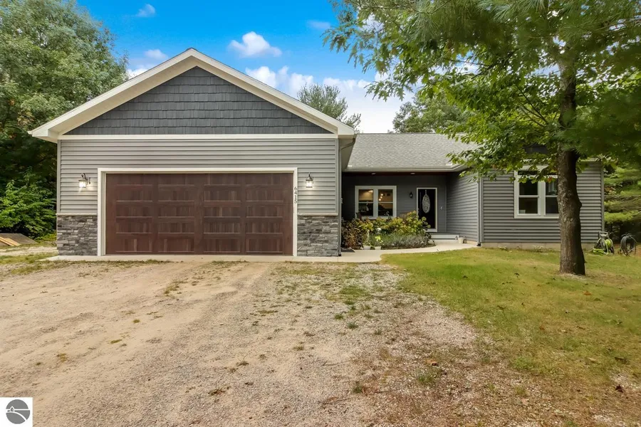 Modern twist on a Classic Ranch built in 2018. A charming 2 bed 2 bath home situated on 4.39 acres, just 1 mile east of the village of Lake Ann. This home features an open floor plan with 1,938 sq ft of living space on the main floor. Highlights include a beautiful, spacious kitchen with large island and pantry, 10' ceilings, gas fireplace, wood floors and two outdoor decks. The primary bedroom flows into a large bathroom and has two walk-in closets. Tons of potential in the framed-out lower level with 9' ceilings, a walkout, egress windows, and plumbing for a 3rd bath and wet bar. The heated garage with epoxy floors provides a clean workspace or storage area. This home is located just a short drive from the Red Door Cafe, Stone Oven, Almira Township Park and public access to Lake Ann. Only 20 minutes from Traverse City, enjoy the quiet of country living with the convenience of nearby am...