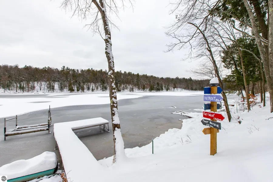 Welcome to modern lakeside living with this beautifully crafted 3-bedroom, 2-bath ranch-style home offers 100 feet of private frontage on the tranquil shores of Turtle Lake. Surrounded by mature hardwoods and offering breathtaking sunset views, this newly constructed home offers modern comfort with natural serenity. Inside, you'll find a thoughtfully designed open-concept floor plan, perfect for entertaining. The beautifully designed kitchen features stainless steel appliances, quartz countertops, a large center island, and an eye-catching tile backsplash. The living room offers tall ceilings and a cozy wood-burning stove, creating a warm, inviting atmosphere year-round. The primary suite is a true retreat, complete with a walk-in closet and spa-like bath featuring a double vanity and tiled walk-in shower. Two additional bedrooms and a full guest bathroom provide ample space for family or visitors. Step outside and immerse yourself in lake life, enjoy your morning coffee on the composite deck, take a soak in the hot tub, or rinse off after a swim in the outdoor shower. The sandy-bottom lakefront is ideal for swimming, kayaking, paddleboarding, and quiet relaxation. A 30x40 pole barn offers abundant storage with full electric service—perfect for your boat, RV, or seasonal toys. Nature lovers will appreciate the setting and Turtle Lake is home to a variety of fish, native birds and abundant wildlife. Best of all, the property backs up to hundreds of acres of adjacent State Land, offering endless opportunities for hiking, snowshoeing, hunting, and year-round adventure. All this in a peaceful, private neighborhood, just 20 minutes from Traverse City and close to Lake Michigan, Crystal Lake, Crystal Mountain Resort, and the iconic M-22 corridor leading to Sleeping Bear Dunes National Lakeshore. Whether you're seeking quiet relaxation, outdoor recreation, or proximity to Northern Michigan’s best attractions, this move-in-ready home delivers the full Up North lifestyle.