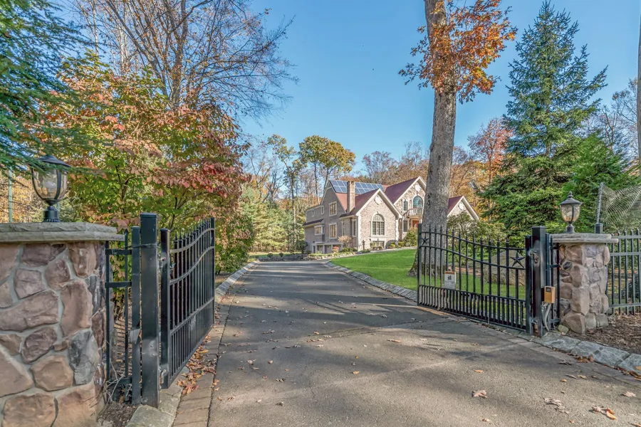 Elegant Saddle River Colonial, situated on a gated private lot and quiet cul-de-sac off Chestnut Ridge Rd. Redesigned and renovated in the past 10 yrs including a two story grand entrance & marble flooring. Luxurious radiant heat added and an elevator installed for convenience. Bright and impeccably maintained boasting hardwood flrs and open floor plan. Ease and function are the hallmarks of this home. White oversized Kitch is perfect for entertaining, flows into formal DR, office/Lib. and great FAM RM w/a soaring ceiling. Spacious 1st flr primary suite w/built-in closets & sitting rm. First flr laundry, pwdr rm, and 2nd en-suite BR. Grand staircase & landing lead to 2 more en-suite BRS and 2nd primary suite w/newly finished spa-bath & WIC.Custom closets and built-in storage throughout.New basement full finished including multiple rooms for a gym, tv/game rm/theater & custom cedar closet.Large windows make this valuable living space. Attached 3 car garage, security & so much more!