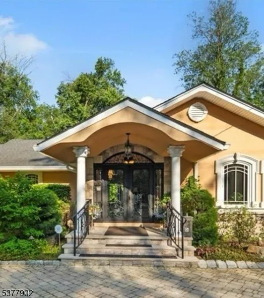 Nestled on nearly half an acre of beautifully landscaped grounds, this meticulously renovated steel-beam constructed ranch offers a seamless blend of quality craftsmanship and thoughtful design. The expansive first floor features a bright and airy layout with Brazilian hardwood floors, radiant heat throughout, a large custom eat-in kitchen with dual fireplaces, and seamless access to the patio through sliding glass doors - perfect for indoor outdoor entertaining. The flexible floorplan includes multiple bedrooms, including a junior suite and a spacious primary suite with a private bath, all complemented by newly updated bathrooms. A striking rod iron railing leads to an upper-level family room and deck, while the full basement includes a cedar closet, laundry area, and access to a two-car garage. Step outside to your own private oasis - the backyard is a serene retreat with lush planting...