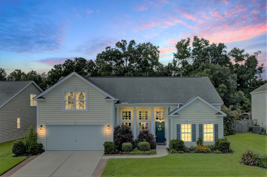 Welcome home to this beautiful 4 BR/3BA home in Moss Grove Plantation. As you approach the property, you'll notice the meticulously landscaped yard with an irrigation system that leads to a large front porch. Upon entering, you are greeted by dramatic 12' ceilings and hard wood floors leading you through a grand foyer to the open dining/living area. The large family room features custom built-ins, wood burning fireplace, and an abundance of natural light from the many windows. The adjacent kitchen features ample cabinet and counter space, newer appliances, a breakfast nook, and a convenient desk area for work or school. The private primary suite is located to the right of the living room. Generously sized en-suite bath includes garden tub, separate shower, dual vanity, walk-in closetas well as a linen closet. Two additional spacious bedrooms are located downstairs both with large closets. A full bathroom is shared between these bdrms. The upstairs suite is complete with a FULL bath, closet, and AC. This is a perfect area for guests, mother-in-law suite, or older children to have privacy. Enjoy entertaining in the huge 10x20 screened porch overlooking the gorgeous fenced back yard with a new oversized slate patio. The woods behind the home gives added privacy, and no flood insurance is required. The beautiful community pool is just a short distance from the home. This is a fantastic floor plan that gives everyone in the family not only their own space, but also great spaces to gather.