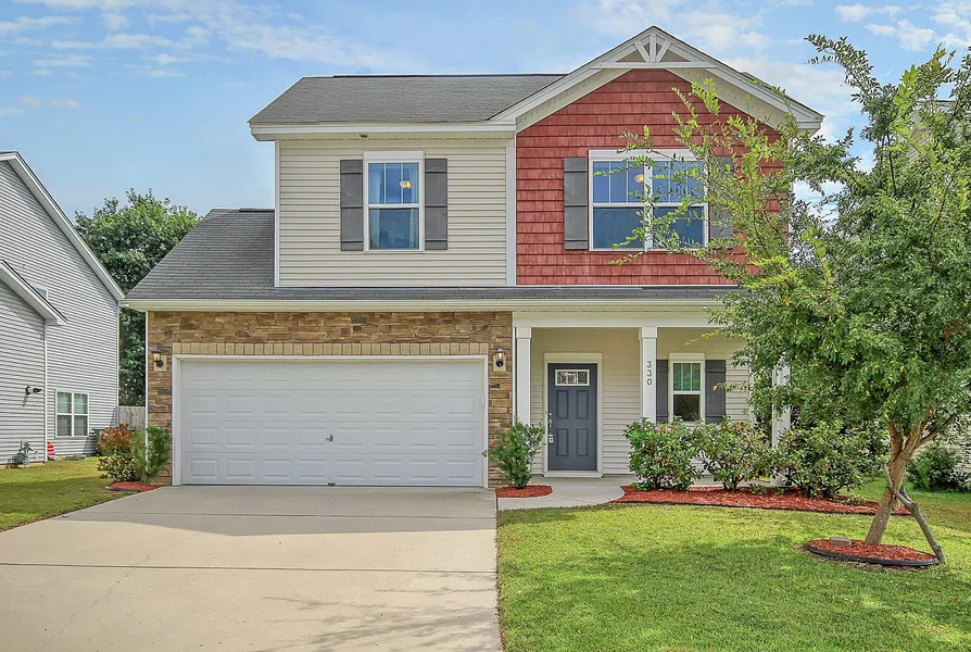 Location, Location, Location!! Just a few minutes to Goose Creek, Moncks Corner, or Summerville!!!Wonderful two story home with an open and light filled floor plan. The spacious entryway showcases the hardwood floors and leads you to the upgraded kitchen complete with granite, stainless appliances, music port with speakers and a large island that overlooks the family room. Cozy up to the fireplace and enjoy the vaulted ceilings! The primary bedroom is on the main level complete with large shower and a walk in closet that includes built in shelving & drawers. Two more good sized bedrooms are upstairs and share a full bath. You will enjoy the convenient location that is just a short walk to the neighborhood pool, frisbee/disc golf, baseball field, soccer field andand easy access to the Naval Weapons Station & Joint Base Charleston!