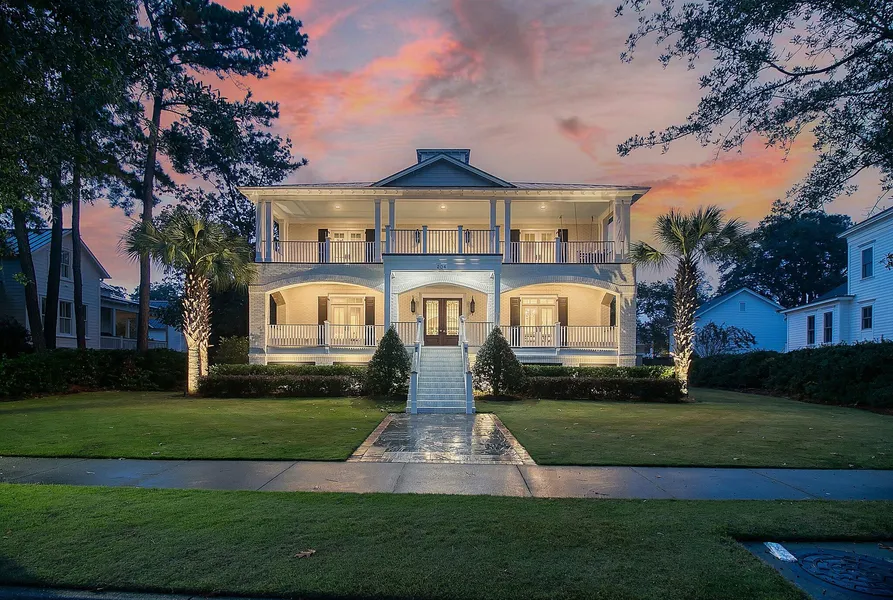 Welcome to this stunning Daniel Island Parkside beauty. This remarkable 6 bedroom, 8.5 bathroom home is situated on a gorgeous lot on one of the most picturesque streets in the coveted Parkside neighborhood of Daniel Island. As you walk into the stunning entrance, you are greeted by a quintessential foyer. Here you are bordered by two spacious rooms featuring beautiful sets of French doors in each that lead out to the front porch. To the right, the dining room highlights a gas fireplace and two spacious closets with shelving for bonus storage space. Across the corridor, a beautiful light-filled mother-in-law suite awaits behind the pocket doors. This room could also serve as a wonderful den or game room.This home boasts recently painted neutral colors throughout, a Sonos Surround System, crown molding and beautiful hardwood floors. The timeless space currently used as a family room inclu...
