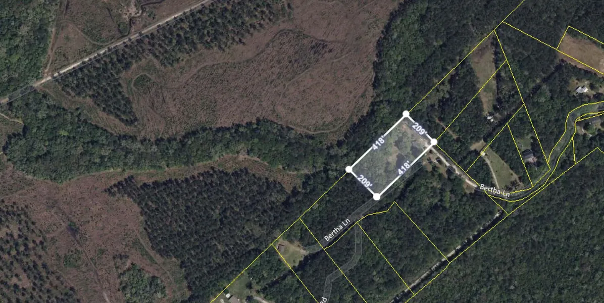 Great opportunity on this 2 acre lot located in the United Drive area of Huger. Located in Berkeley County, the land has existing utilities in place, a portion was cleared at one time for a homesite. Bertha Lane is a secluded area, with just a few residents living there, offering plenty of peace and quiet, and with NO HOA! This lot is located towards the end of Bertha Lane, which offers limited traffic. The shape is rectangular, measuring approximately 209' x 418'. An approximate 13 mile drive to Mt. Pleasant, and 17 miles to Interstate 526. There is an older mobile home on the land.