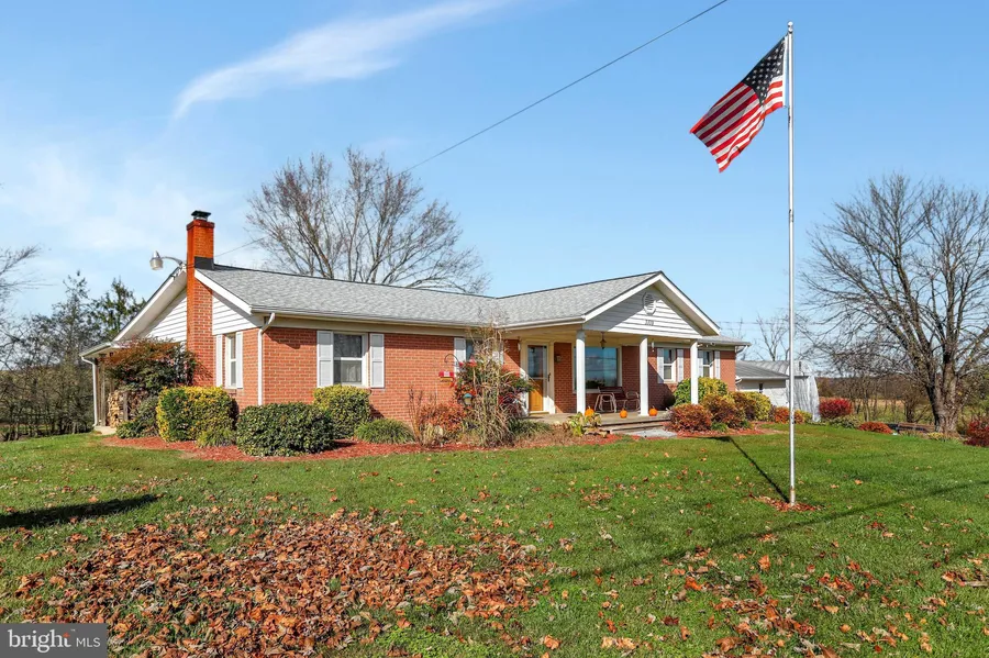 Beautiful brick rancher on private 1.6 acre lot with tons of extras! Initially built with 1.5 bathrooms but was later combined to make one larger bathroom. Could easily be converted back to the 1.5 bath and plenty of opportunity to add a bathroom in the basement! Roof replaced in 2015 with architectural shingles and comes with 50 year warranty; new gutters and downspouts with 20 year warranty. Completely renovated kitchen in 2017 to include, rustic hickory cabinets, granite counter tops, LVP flooring, black stainless steel Kitchen Aid appliances, Blanco Italian Diamond sink and much more! Over $50,000 invested in this renovation! Fully finished basement complete with bar, sitting area and storage. Additional 12 x 37 bonus room on the back of the house complete with Australian Cyprus hardwood flooring. Can be used as dining room, sitting room, sunroom, etc. All bedrooms have hardwood underneath the carpet that could be refinished if you so choose. Need parking? This home has it all including a 2 car attached garage, 2 car detached garage, 30' x 50' metal utility building with separate 100A electric service, 17' tall automatic garage door used to store your RV, boat, or whatever you choose! Step out of the back door onto the private deck of your own pool and hot tub. Spacious back yard backs up to rolling fields and beautiful scenic views! Don't miss this rare opportunity on a very unique property!