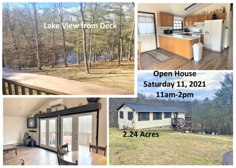 Imagine waking up to spectacular views of forest and sounds of nature. Sip your morning coffee and enjoy Mother Nature's beauty from one of the two decks overlooking the lake. Enjoy fishing from your own property. This well maintained home has an open floor plan with vaulted ceilings in the great room, three bedrooms and one full bath to make this a cozy country retreat. Don't wait to take a look at this charming, well maintained home. Recent upgrades to home include new Luxury Vinyl Plank flooring throughout, 2 new mini-split HVAC systems, 2 new patio doors, new Bath Fitters shower/tub unit installed.