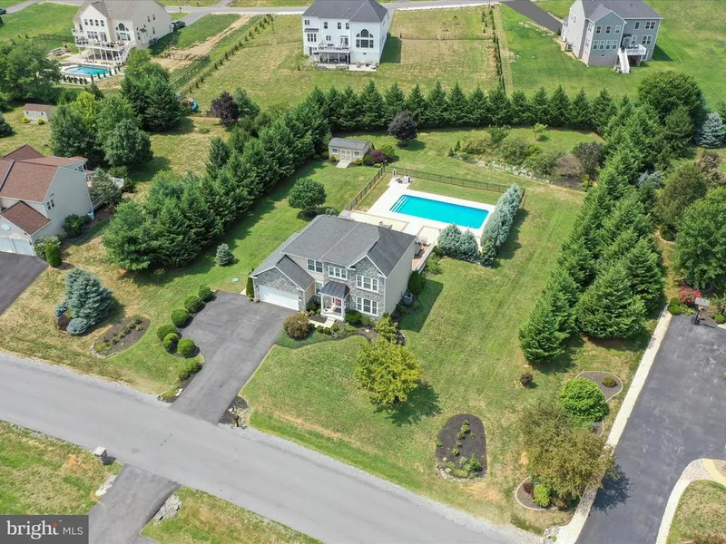 Stunning Executive Style home with personal Inground Swimming Pool. Main level features beautiful hardwood floors, granite counter tops in the gourmet kitchen with island and double oven (including convection) and pantry, breakfast/sunroom, formal living and dining rooms and family room off the kitchen. There is a half bath and laundry room on the main level. The finished basement has walk out stairs, large recreation room, additional finished space plus full bath. Several storage rooms complete this level. Upper level boasts primary bedroom with large walk-in closet and deluxe owner bath complete with soaking tub and separate shower plus double sink vanity. Three additional bedrooms and second full bath complete this level. Outside.... wow, 20x44 heated, inground pool surrounded by large patio and multi-tier deck that is nearly maintenance free. 10x20 outbuilding with electric. Back is fully fenced and landscaped; your private oasis.