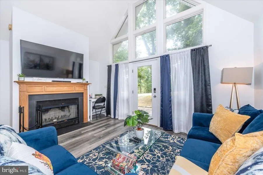 Tucked on a quiet cul-de-sac on a 1.02-acre wooded lot, this one-level 3BR/2BA retreat is ready for year-round living, a low-maintenance weekend escape, or an easy short-term rental. A Woods Club Class B (Indoor/Outdoor) membership is in place, giving you access to many of the community's recreation amenities. Inside, the wide-open main living area impresses with soaring vaulted ceilings and a dramatic floor-to-ceiling window wall that floods the home with natural light. The spacious living room with cozy fireplace flows to the dining area and a fully equipped kitchen with breakfast bar-great for everyday living and entertaining. A smart split-bedroom design places the private primary suite on one side and two additional bedrooms with hall bath on the other. Just off the kitchen, a large screened-in porch lets you sit among the trees to savor the peaceful surroundings; a step-down patio ...