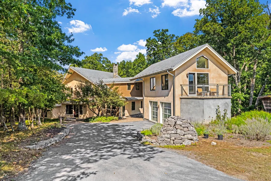 Outdoors, every detail has been considered: a deep covered patio with a wood-burning fireplace, living roof blooming with sedum, and garden paths lined with lavender, hellebores, phlox, and mature crepe myrtles. Panoramic views of Sleepy Creek and North Mountain complete the immersive natural experience. This is a home where sustainable luxury meets editorial-worthy design. Geothermal heating and cooling, radiant floor heating, and passive solar orientation work in harmony with thick straw-bale wall insulation to create year-round comfort with reduced energy consumption. Clay and lime plaster offer both tactile elegance and natural breathability. Douglas Fir moldings and trim elevate every surface with warm tones. An underground water collection cistern, along with bio-kinetic septic system, provides landscape irrigation. Broomgrass is a 325 acre community comprised of 16, one-acre properties with shared ownership of the remaining 309 acres of pastures and woodlands in a preservation trust. Shared amenities include a large pool, hot tub, sauna, pavilion, and kitchen for community gatherings. A true unicorn property, seamlessly blending design pedigree, environmental ethos, and editorial appeal.