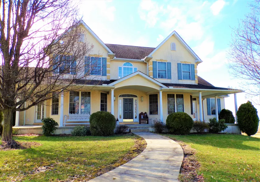 Gorgeous home! features 6 acres w/beautiful views and secluded setting. Builder's dream home that has it all. High ceilings, large rooms and beautiful spaces including huge kitchen and breakfast area, formal dining room and living room, 2 story family room w/stone fireplace, two sets of stairs, office & pool room w/pool table. 3 car attached garage & 3 car detached garage with possible in law apartment above (not completed). Lower level Inlaw suite with separate entrance approx 800 SF