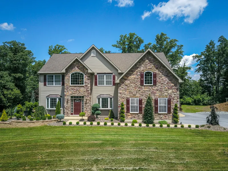 Impeccable vaulted 2 story with an open floor plan and an impressive in ground pool on almost 8 wooded acres in Wilson Schools. This 11 year old stately home boasts a picturesque setting and upgrades like: Heated in ground pool with three sources to heat the pool (1. wood stove, 2. propane heater, 3. solar) and plenty of patio area including a fire pit by poolside, Rinnai tank less water heater and beautiful landscaping. The regal cherry kitchen has staggered cabinets with crown molding, granite counter tops and tile back splash, island work space with bar stool seating for 4 and tile floors that flow into the vaulted family room with stone fireplace and wall to ceiling windows that overlook the pool area. The master bedroom has a walk in closet, sitting room and a super bath with a Jacuzzi tub and a double bowl vanity. The entire house has tile or hard floors throughout except the famil...