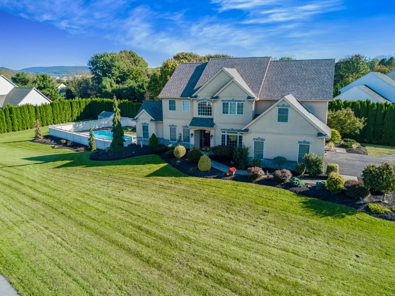 Welcome to 18 Buckingham Drive located in King's View Estates. This grand home features mature and elegant landscaping and the pristine lawn and in-ground pool are sure to make your neighbors envious. This elegance carries inside your home. Your 2-story foyer is open and bright, accented by a pretty chandelier, gorgeous, open staircase and hardwood flooring that leads throughout most of the first floor. Your kitchen is a chef's dream, featuring cherry cabinetry, island with seating, double oven and a cooktop, granite countertops, tile backsplash and flooring. The eat-in area is a great place for everyone to catch up with their day or for homework time. The kitchen is open to your 2-story family room with gas fireplace, tons of windows bringing in natural light but plenty of room for furniture placement and your big screen TV. Your dining area featuring tray ceiling and large window is a ...