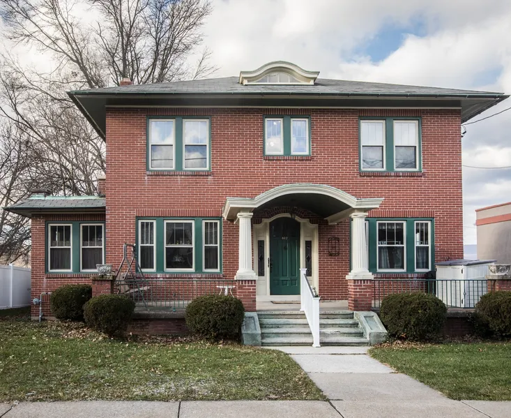 This beautiful brick craftsman/colonial house with wonderful curb appeal has been well maintained over the years! This house has been converted to 2 rental units, but has the old world charm of beautiful hardwood flooring and woodwork throughout. Both units have been converted to economical gas hot air heat (2 furnaces) and both units have central air units. The first floor unit consists of a living room with fireplace, dining room, kitchen, 1 bedroom, sunroom, and bath with a walk-in shower stall. Laundry hookups are within the unit. This is currently renting for $700/mo. The 2nd floor unit is freshly painted and has an open floor concept of living room/kitchen combo. There are 2 bedrooms, walk-in closet, bath has a tub/shower. There are also laundry hookups in this unit. The unit is currently vacant but last rented at $725/mo. Tenants pay for the electric & heat. Landlord pays for W/S/T. Other highlights include replacement windows, 2 tankless water heaters, and all appliances remain. The detached garage can hold 3 cars. It has an overhead door on 4th St that can hold 1 car and the basement of garage can house 2 cars. Bottom of garage is currently rented at $100/mo. Thinking of living here yourself and wanting more space? Property can be converted back to a 1 family dwelling with some renovations. Woodwork and stair posts were saved from renovations.
