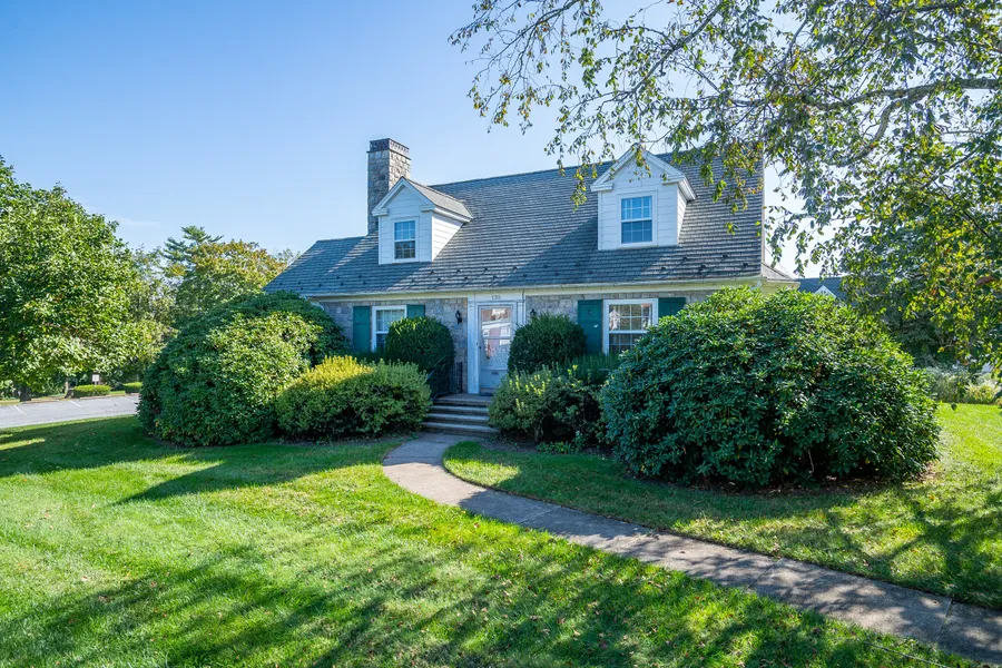 The winding sidewalk to the gorgeous front door of this 1950s stone cape hints at the anticipation of finding a truly beautiful home, built when quality was the norm. The mature landscaping on this corner property, the splendid trees and lush, flat lawns make you want to linger just a bit before you head inside. Open the front door, step inside, and know you have found the one youve been waiting for. The foyer is large and inviting, the hard wood floors are in great shape, and there is a beautiful staircase leading to the upper level. Lets first take in the main level with a living room with fireplace to your left, and a formal dining room, currently used as an office to your right, with a bay window with deep sills, letting in the light and gleaming hard woods. If you want tons of cabinet space, a sink with extra side work areas, a peninsula, an alcove to tuck in your fridge and an exit...