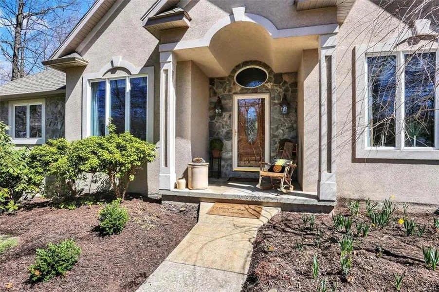 Sprawling Rancher on 1.15 acre wooded lot with 3 Bedrooms, 3 1/2 Baths, Eat-in Kitchen, Great Room with a fireplace and 3 Skylights, Formal Dining Room, Den, Sunroom Room. Private Main Bedroom and Bath suite, 1st floor Laundry, large finished Walk-out basement with a fireplace, wet bar and additional storage. 3 car attached garage. Rear yard with paver patio, Pergola, outdoor fireplace and a pond with a waterfall. Trane heating & cooling system, central vac, EV Charging Station, Travertine stone tile & hardwood floors, 12 ft ceilings and 2 Butler's pantries.