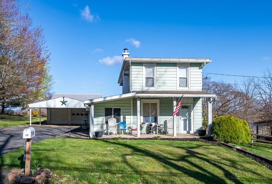 Your new beginnings start here! Welcome to this beautifully updated home ready and waiting for you. As you step inside you will be greeted by neutral tones and beautiful woodwork throughout. The living room is accented by a wooden staircase leading to second floor. Work from home?? Your corner office awaits!..off the living room with lots of natural light pouring in. First floor powder and laundry room feature custom cabinetry along with washer and dryer to help get you started. Awesome kitchen features plenty of counter and cabinet space with all appliances included to keep your moving budget in line. Dining area has lots of windows and steps out to the driveway and backyard from here. Spacious yard offers room to roam for loved ones along with great views and deck perfect for entertaining or relaxing. Lots of off street parking and two car garage to keep you out of the elements. Updated plumbing and electric give you peace of mind. Wonderfully appointed upstairs is perfect when its time to unwind from a long day. Big bathroom has been remodeled for your comfort. Terrific location is just outside of town offering the countryside feel but still connected to public sewer for peace of mind. This is the one you have been waiting for. Welcome home!