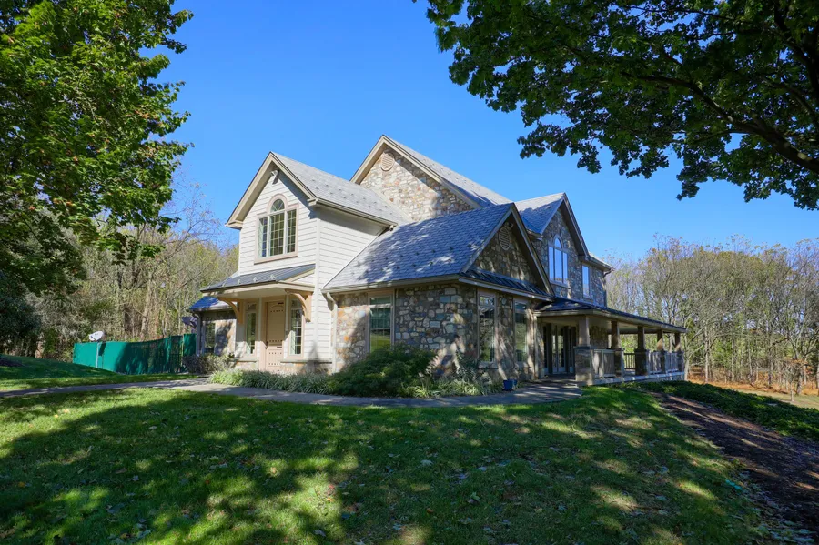Set on over 40 acres of country paradise, this grand property known as Shady Lane Farm is the perfect home for a peaceful getaway. A long driveway surrounded by towering trees on both sides leads past a fenced lined pasture on one side and pine trees unveiling a beautiful pond on the other. The stone estate with a wraparound covered front porch overlooks the pond and pristine landscape. As you enter through the exceptional 2-story foyer with a breathtaking crystal chandelier, you will find an open floor plan with hardwood flooring, fine features, and quality craftsmanship throughout. Outstanding features include: an oversized 1st floor owner's suite, an elevator that goes to every floor in the home, and a gourmet kitchen with marvelous views of the outdoors. The formal living room with hardwood flooring contains a 2-sided fireplace, built-in cabinets, and crown molding. The family room i...