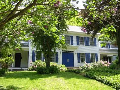 This GRACIOUS VILLAGE COLONIAL in Becket village has been extensively renovated from head to toe, and sits on the banks of Yokum Brook. An elegant house with large rooms, great flow, and five bedrooms and baths, it is as pretty as a postcard. There are wide plank floors throughout, a screened porch, and two front rocking chair porches. The acre of land has stone walls and you can hear the rushing brook from every room.