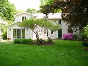 Located on a very quiet country road, the house sits on 3+ acres of open fields. The garage/barn includes loft space for 4th bedroom, studio.