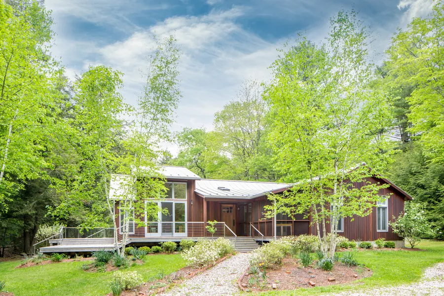 Exceptional quality, stunning detail, superior finishes and a gorgeous setting, describe this contemporary retreat. Set on 4 lovely acres with a stream meandering through, this single level, 3 bedroom home was completely reimagined with the highest quality and attention to detail. From the locally sourced walnut floors throughout, to the cherry built-ins, Jerusalem stone surround for the fireplace and the exceptional kitchen with Scavolini cabinetry, beautiful granite counters and chef's quality appliances, this light filled home is perfect for either casual living or elegant parties. The great room holds a spacious dining area, the fabulous kitchen and the large living room and has windows on three sides with multiple french doors opening to the large wrap around deck and stream beyond. The master bedroom suite takes advantage of the double sided gas fireplace and has a large en-suite bath with walk-in shower and windows that frame the woods like artwork. That detail and quality extend to the guest bath with its large soaking tub. Two guest rooms and a screened porch complete the first floor.