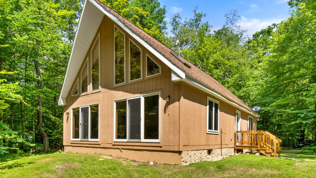 Nestled on a private 4-acre lot, this property offers the perfect blend of tranquility and modern style, making it a true haven for those seeking a country retreat yet having the modern amenities for today's needs. Upon entering, you'll be captivated by the open concept living areas with cathedral ceilings that lend to an airy and spacious ambiance. Expansive windows allow natural light to flood the interior, creating a seamless connection with the picturesque outdoors. The main level offers an open floor plan that facilitates a seamless flow between the living room, dining area, and recently renovated kitchen. Convenience is at its peak with a mudroom and first floor laundry, making day-to-day tasks a breeze. Furthermore, this home offers the added convenience of two generously sized first floor bedrooms and a full bathroom with a walk-in shower. The second floor is dedicated to the spacious primary suite, complete with a full bathroom.