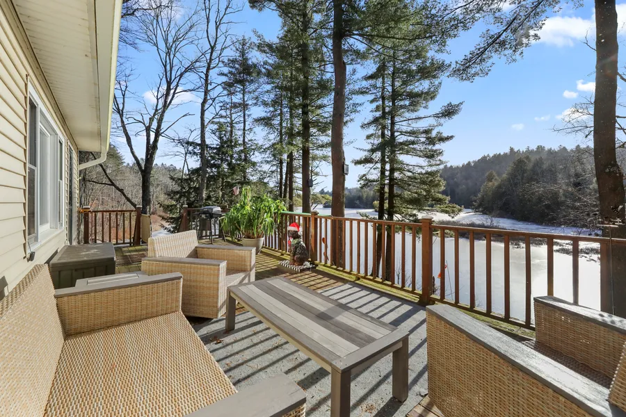 Step outside to the beautifully designed terraced yard and enjoy breathtaking water views in every direction. With only a few homes on Hayden Pond and none in sight of this property, it feels like your own private lake. Since 2017 many improvements have been made on this lovely property: metal shingle 100 year roof, newly created lower level in-law apt with kitchen, full bath and gas fireplace. Completely reimagined yard along the waterfront with Goshen stone patio and steps, walkways along the water with landscaping, a drilled well and an auto generator. There's plenty of room with 3 full baths, 3 bedrooms and a spacious living room with expansive lake views and deck, gas fireplace with gorgeous rustic stone and reclaimed wood surround. A few minutes to Jacobs Pillow, Otis Ski Ridge and Otis Reservoir. Schedule your showing now!