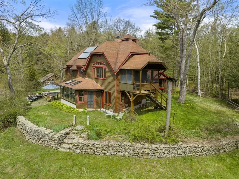 Welcome to Colesbrook Manor, an ash timber frame construction masterpiece set alongside lively Coles Brook on 4.4 acres in the southeastern slopes of Crane Hill. Built in 1984 and solely occupied by joiner, carpenter and Heartwood School (of timber framing and energy-efficient house design) co-founder Andy Inganni, this home takes advantage of the microclimates of its setting and the energy and lifestyle benefits of traditional craftsmanship and construction. Beyond 3 bedrooms and 2 full bathrooms, this home features an expansive open floor plan on its main level, inclusive of a living room, dining room, kitchen, indoor raised garden bed with symbiotic drainage, and a screened entry porch. The split level features an in-law suite with bedroom, bathroom, sauna, and screened back porch. The 2nd floor boasts the primary bedroom, with a 3rd screened porch/balcony, laundry, 3rd bedroom, a ful...