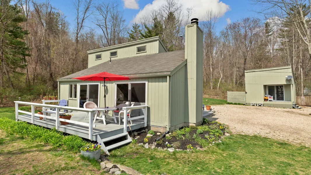 Welcome to the community of Prospect Lake! Just in time for summer, this freshly painted, classic four season modern lake house in Prospect Heights is ready for you to enjoy. Located on a private one acre lot just a short short distance from the water's edge with deeded access to the lake. The interior of this three bedroom two bath home is light, bright and airy with plenty of glass to bring in the views. The first floor consists of a dramatic great room with cathedral ceilings, a dramatic open staircase, sliders to the sunny deck, a primary bedroom, full bath, and laundry/utility room. On the second floor you will find two large bedrooms both with cathedral ceilings and a shared full bath. The interior is spacious and perfect for entertaining yet cozy enough for just relaxing next to the wood stove. To add to the charm, there is a sweet accessory storage building which could also potentially be fun to use as a summer bunk/play house for younger set. The other fabulous news is that with almost an acre of land you will have plenty of options to build your "as of right" accessory dwelling unit if you need more space. Prospect Lake is a true gem which will enhance your quality of life again and again. Let your new lifestyle begin.