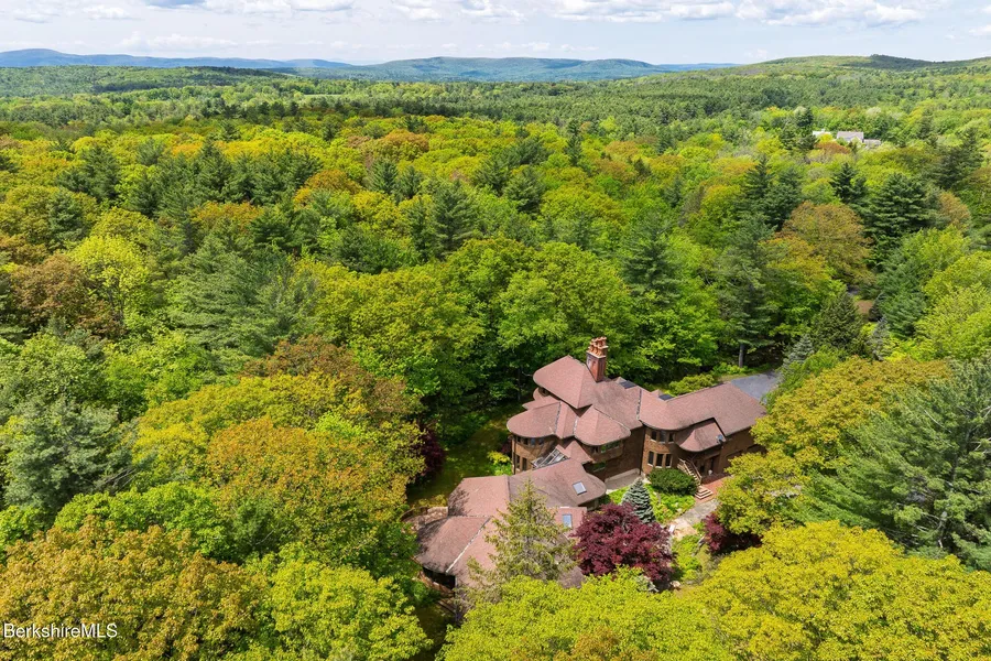 A remarkable example of bespoke craftsmanship spanning over four floors with an indoor swimming pool on nearly 14 private acres. Drive up the winding driveway to be met by a sprawling wood shingled home with rounded turrets and curved windows, a theme that is carried throughout. A grand entryway leads you through to the open plan Kitchen, dining and one of the many living spaces, this one with a marble surround wood burning fireplace. The circular sunroom leads through to the atrium and into the oversized swimming pool room which is fully equipped with air exchangers and heating systems. Upstairs, an extra large primary suite graces most of the second floor with its own living room, an outdoor coffee porch and remarkable custom cabinetry in the primary bathroom. There are lovely guest spaces spanning all four floors. A truly creative and healthy home.