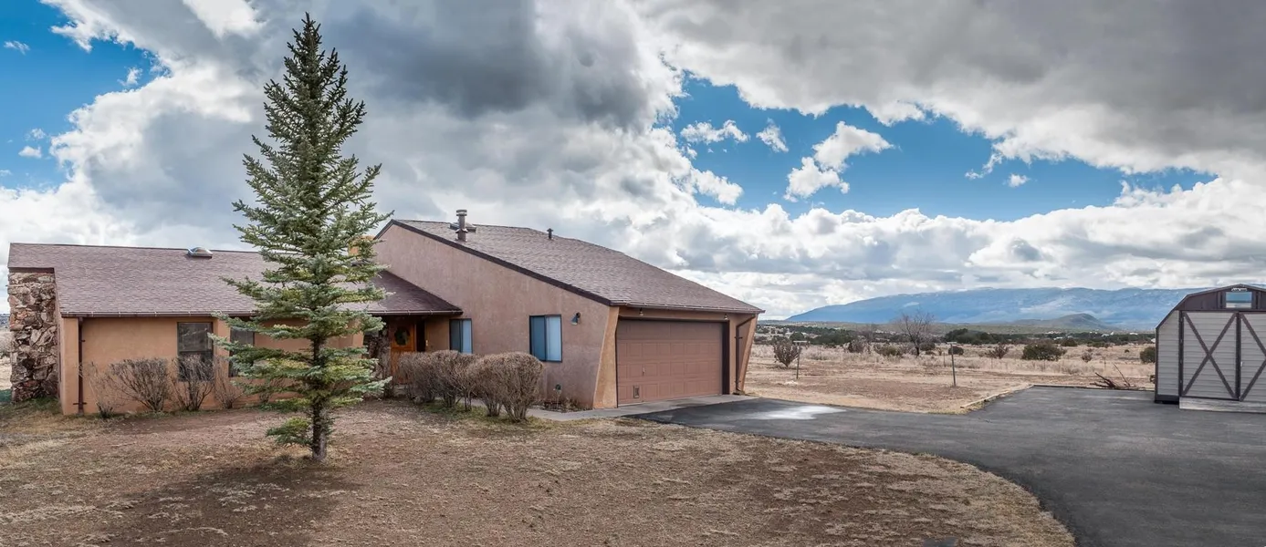 PRICE REDUCED $10,000! Don't miss this home which is impeccably maintained. Enjoy dining al fresco or from the lovely dining area both w/incredible mt views. Passive solar gain. Enjoy your favorite cup of coffee or tea, read a book or talk with friends in this 11X11.5 Garden Room. This is a beautifully maintained home! The heart of the home is a Great Room w/cathedral ceiling, abundant natural light toasty warm pellet stove, wonderful sitting areas and so much more. Spacious master suite other large bedrooms, Kitchen has lots of counter area, a Sandia Mountain View, plentiful cabinet space newer appliances, large pantry. New Architectural shingle roof 2009, furnace 2011. RV Pad! 12x24 Storage Building Rd maintain.Newer Hot Water Heater.