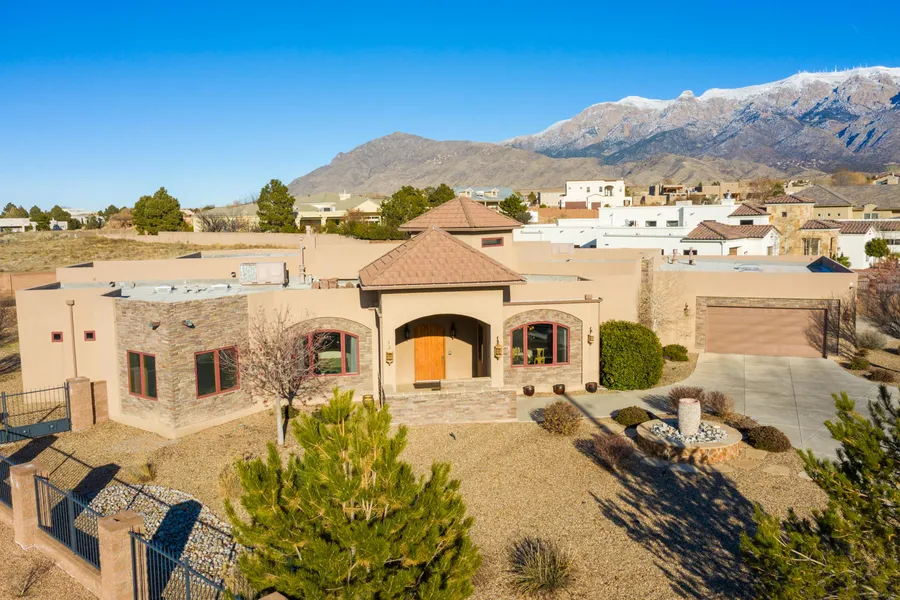 ''Under contract taking backup offers.'' Wide open layout works for the pickiest of buyers. New TPO roof in 2020. There are two large living areas that bookend the large highly upgraded kitchen. In addition to the gorgeous cabinetry, the fabulous amenities in the kitchen include Sub Zero refrigerator and freezer, double Wolf ovens, warming drawer, pot filler, butler's pantry, a oversized kitchen island. Disability access suite adds great flexibility with those that need easy access to shower, etc. Gorgeous mountain views throughout the house. The .89 acre lot is fully landscaped and walled completely with two automatic gates for privacy. CITY WATER AND SEWER. Large entertainer's patio. Oversized 4 car garage with extra storage space to boot! North Star, Desert Ridge and La Cueva.