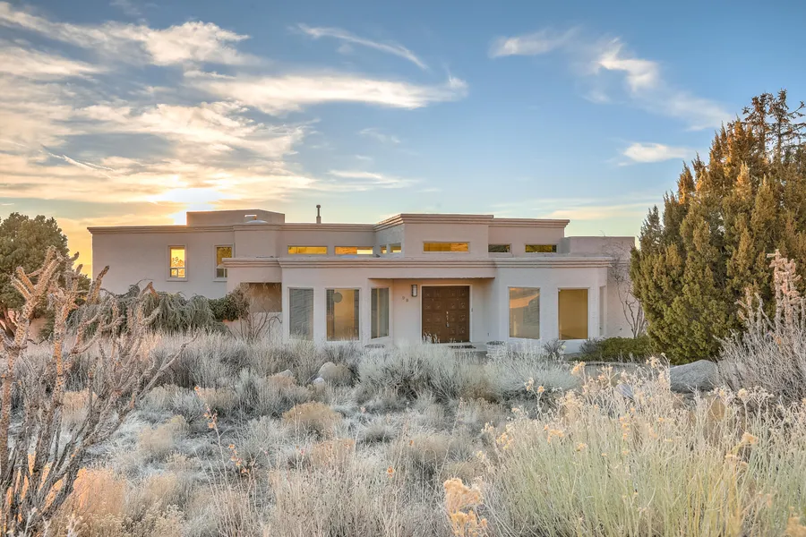 Full Frontal Framing - Incredible Sandia Mountains (east) and Rio Grande Valley (west) boasting spectacular views and brilliant natural light. Original one owner/ custom home with Best Bones that await the lucky buyer wanting to update the finishes in this awesome home - huge opportunity in Sandia Heights! Dramatic raised ceiling Great Room with tremendous limestone gaslog fireplace, wet bar and direct view deck access - huge city light views! Multiple living and dining area, den/office, atrium and outstanding master suite with forever vistas. Just blocks to the National Forest trails and wildlife. See it today... this one won't last!