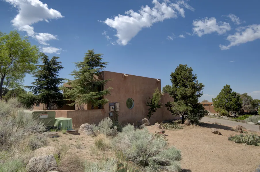 Don't miss this wonderful opportunity to live in the foothills of the Sandia mountains with wonderful views. This Roger Smith home is situated on .25 acres. The floor plan has a large open living area with raised beamed ceiling,wood burning fireplace,satillo tile flooring and mountian views. The kitchen has been remodeled with white cabinets,granite counter tops open to the dining room that could be used in various ways. This home has two large bedrooms and two full baths with new cabinets and counter tops. The master bedroom tub has been replaced plus there is also a private shower,double sinks,large walk in closet,new toilet and a sliding door that leads to the private enclosed patio. New garage door and opener. The home has pre-inspections done with most repairs completed or remodeled.