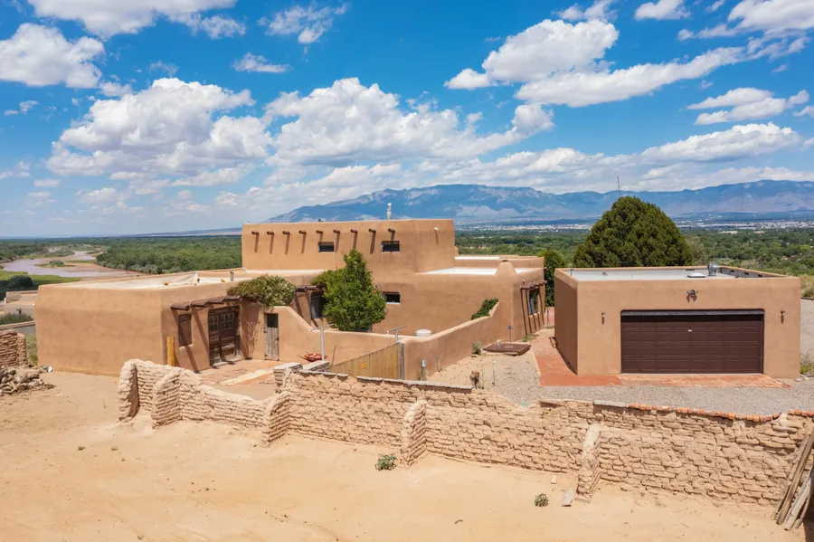 Wonderful opportunity to own your dream home! With a bit of sweat equity this Adobe home has unlimited possibilities!! Home sits on over an acre of land and has the BEST view of the Rio Grande, Sandia AND Manzano Mountains, & Abq. skyline. MILLION DOLLAR VIEWS at their finest! Original owners who were one of the very first to build on the West side are ready for someone to love their home after 60 years. Home is secured with a private electric gate & alarm system. Gorgeous historic details including hand laid brick floors, Beam ceilings, FOUR wood burning kiva fireplaces, & hand carved doors. Unfinished upstairs has the potential to be finished and converted to master suite or maybe a B&B w/ sky deck? Appraised @ $580,000 April 2021. Home to be sold as is. Roof & Boiler 2014.
