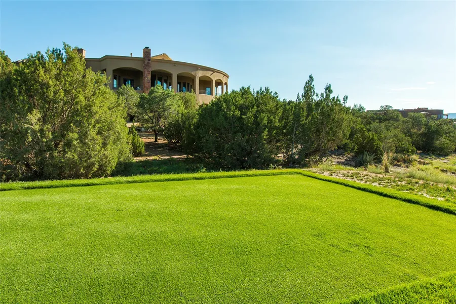 Enjoy the cool mountain air! Possibly the most beautiful home in PaaKo. Situated on the 27th tee box of award winning PaaKo Ridge Golf Course, enjoy panoramic views in all directions from stunning patios and outdoor entertaining areas. Custom built home features 2 distinct living areas. On the main level, enter through an enclosed courtyard to the home. You will be greeted by expansive views and beautiful walnut floors. The kitchen is well appointed with 2 granite islands, double ovens, gas range, storage galore and large walk in pantry. Entertain in adjacent dining room with butler's pantry or al fresco on large patio overlooking the mountains & golf course. Large primary suite with fireplace has walnut floors, expansive views, french doors to patio. Luxurious bath completes the suite. The lower level is a home unto itself. Large living area with stone fireplace, mini-kitchen, walnut floors, opens to a large patio with outdoor kitchen and fireplace. There are 2 bedrooms with Jack & Jill bath, a large media room, wine tasting room, wine storage room, small office, sitting area, and an incredible studio/workshop with French doors to the outside. Enjoy peaceful mountain living within 20 minutes to Albuquerque. Nearby amenities include grocery store, restaurants, and the lovely PakKo Ridge golf course.