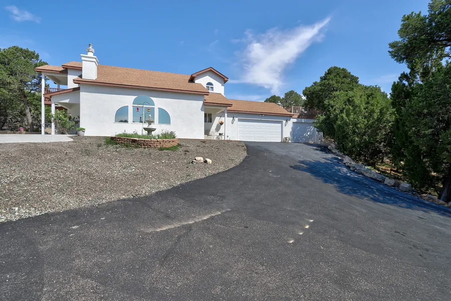 Spectacular exceptionally maintained get-away home, sitting on 1.26 acres. This home features a privately gated road with amazing mountainous views. This immaculate home includes 3 Bedrooms, 2.5 Baths, 3 Garages, and 1 detached Garage! The garage may be used for a fantastic Workshop. This home is also completely fenced with a gated driveway. The property sits within 30-mins of Sandia Peak Ski Area, Amazing Hiking areas, and Albuquerque. This beautiful home is move in ready! The property enjoys comfortable weather, seasonal views, and is waiting for its new owner. Carpet removed and new flooring in it's place.