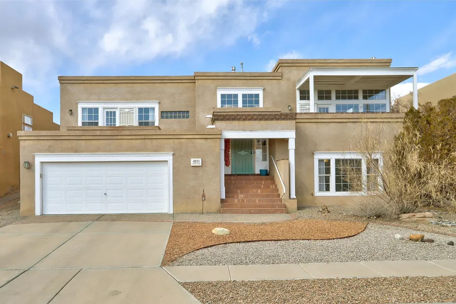 Huge Price Drop! Don't miss this fantastic opportunity to own this home with gorgeous views!This beautiful split-level home boasts views of the Sandia Mountains and Albuquerque City Lights, which can be enjoyed from the home's multiple balconies. Step outside and explore walking trails that wind behind the property. Inside, the open-concept kitchen is perfect for cooking and entertaining, while spacious walk-in closets provide ample storage in the bedrooms. The primary suite features dual sinks, a jetted tub, and a separate walk in shower. The lower level offers a 313 sqft versatile space, ideal as a bedroom, game room, or family room, with a walk in closet. Don't miss the extra storage/crawlspace in the garage.