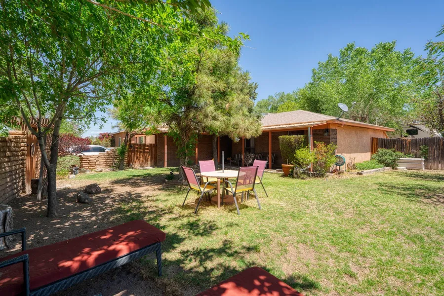 This charming North Valley home is ready for new owners! This great property offers, 3 bedrooms, 1.75 baths, 2 living areas and 1,735 SQFT. Updates include: a new front porch(2023), laminate flooring (2023), Carpet (2025) and a roof (2020). Enjoy outdoor living with the covered patio, backyard access, and two storage sheds. The front courtyard features beautiful exposed Adobe, perfect for creating a private retreat. Additional highlights include a new water heater (2024), a gas stub for the backyard patio, and a Master Cool system. Conveniently located less than a mile from I-40 on a desirable corner lot, this property is not within an HOA or PID restrictions. Don't miss out on this amazing opportunity!