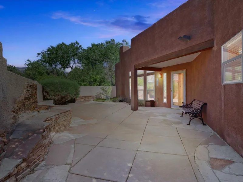 Welcome to this stunning North Albuquerque Acres gem, nestled on a spacious 0.89-acre lot with breathtaking views of the Sandia Mountains. This 4-bedroom, 2-bath home offers a serene escape in one of Albuquerque's most sought-after neighborhoods. Step through the charming front courtyard with a tranquil fountain and into a warm, inviting interior full of natural light. The backyard is perfect for relaxing or entertaining, with plenty of room to enjoy the outdoors. Located in the highly desirable Double Eagle Elementary and La Cueva High School district, this home combines beauty, space, and top-tier education in one exceptional package