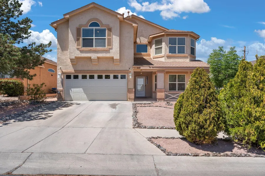 Located in a desirable gated community with quick access to I-25 and I-40, this beautifully updated 4-bed, 3-bath home offers generous living space and stylish upgrades. Enjoy two spacious living areas and a versatile loft perfect for a home office or playroom. The kitchen features a stunning tile backsplash, under-cabinet lighting, and newer flooring throughout. Stay comfortable with refrigerated air, and take advantage of the upgraded electrical panel and EV charging port. The backyard is low-maintenance and includes a dedicated dog run. The oversized primary suite is your private retreat, complete with a spa-like bath, soaking tub, and a large walk-in closet. Schedule your private showing today!! You do not want to miss out!!