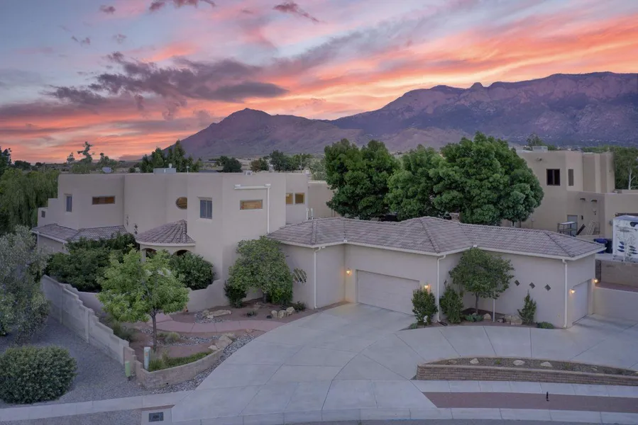 Beautiful custom designed home on 1/3 acre culdesac lot w/incredible mt. views. 3,936 sqft includes a gaming room with wet bar which can be converted into an additional bedroom along with the downstairs office, making this a 3 to 5 bedroom home. Lots of custom touches, soaring ceilings, accent lighting in several rooms. Huge primary suite on main level w/his/her sinks, oversized tub & separate shower. Walk in closets and safe room attached. Spacious kitchen w/granite countertops, large breakfast bar, formal & informal dining & great room with fireplace. Gorgeous landscaped for both front and backyards w/covered patio, mature trees, custom trellis and raised garden areas. Gated entry with mature trees, and pond/waterfall to greet you.