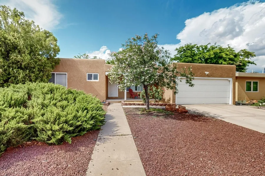 Delightful 3-bedroom, 2-bath home filled with natural light and stunning mountain views. Enjoy cozy evenings by one of two wood-burning fireplaces. Hardwood floors throughout add warmth and character. The 2018 TPO roof offers peace of mind, and the low-maintenance landscaping makes outdoor care a breeze. Refrigerated air to keep you cool all summer long. Ideally located near UNM, dining, shopping, and freeway access, this home combines comfort, convenience, and charm. A perfect blend of serene living and city accessibility!