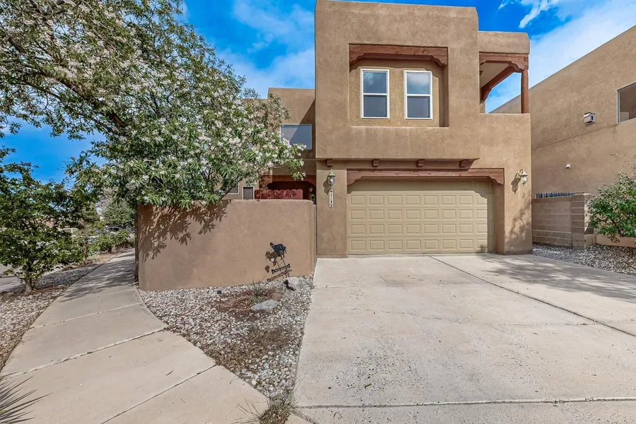 Perfect 2 story home with stunning views of city lights and the Rio Grande Valley. Excellent location close to I-40, Montano and Paseo. Spacious reverse floor plan with 2 primary suite options. French doors welcome you to an amazing primary suite with a huge Jacuzzi tub, separate shower and dual sinks. Open concept living area, great for entertaining. Upstairs patio with an expansive view of the Sandia Mountains. The spacious kitchen has a bar area, stainless steel appliances, large pantry, and granite counter tops. Large walk in closets in most bedrooms. Nice low maintenance backyard with a shed. Car charger in the 2 car garage. Two beautiful 2-way fireplaces, one in the kitchen/living room, the other in the primary bedroom/bathroom. This house was built with attention to detail.