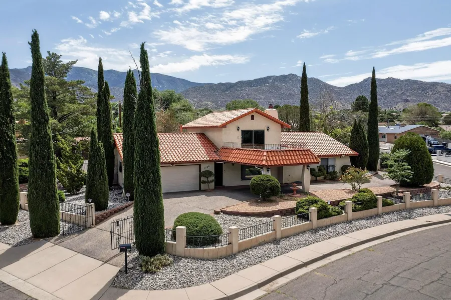 Stunning Mediterranean-style home on a spacious corner lot! Enjoy a classic tile roof, two generous living areas, fireplace and an updated kitchen. Entertain with ease in the outdoor kitchen or relax in the beautifully landscaped backyard. Ample parking includes an attached garage, RV pad, and a rare second driveway--perfect for all your vehicles and toys. With 3 bedrooms, 2 baths, this home offers comfort, style, and flexibility. Easy commute to KAFB and Labs.