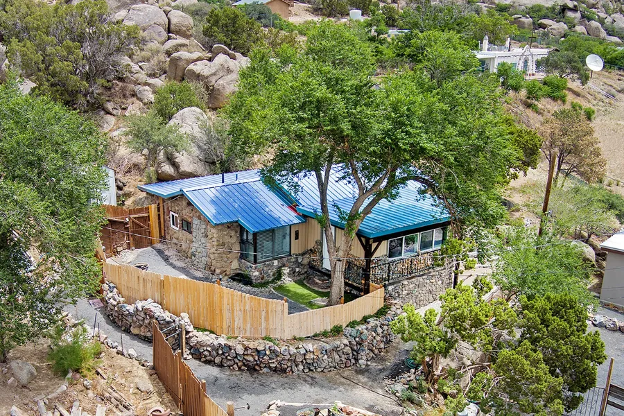 Escape the city by just minutes, worlds away to your timeless and peaceful retreat in this beautiful 1,101 sq ft cabin with 472 sq ft studio workshop, plush gardens, sheds, and an access road to hidden picturesque acreage (1.82 total acres!) perched high above everything. DYNAMITE! Special features include durable metal roof, solid stone exterior, energy-saving thermal windows, beam and tongue & groove interior ceiling, bright neutral colors, spacious living and dining options (can be switched upon preference), modernized bathroom, thoroughly updated kitchen with new cabinetry | butcher block countertops | and stainless steel appliances. You'll love having creative space in the heated studio workshop and fragrant garden featuring fruit trees, vegetables, and colorful blooms. A+++ find!