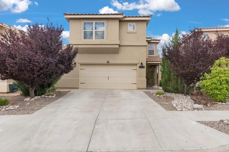 Everything you love about Juan Tabo Hills - Newer homes on the east side of town, minutes from the KAFB, but NO PID. Sitting on an elevated lot, with many updated finishes. Open and bright - no carpet. Flexible layout offers 4 bedrooms and office on the main floor with a 3/4 bath. Could be a 5th bedroom on the main floor if needed. Ample laundry room upstairs. Great kitchen with granite countertops, unique tile work and a breakfast nook. Take advantage of the owned solar system with the EV outlet in the garage. Back yard is a wonderful space with views for miles- still time for making summer memories in this very special home. Plan to see this one this weekend..